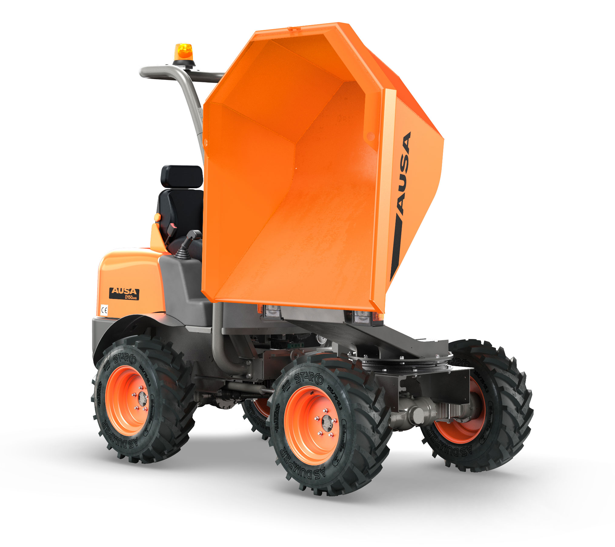 D150AHG는 1.5톤(3,300lb) 적재중량과 180도 스윙 스킵으로 완벽한 적재량 비율을 자랑하는 굴절식 덤퍼입니다. D150AHG는 크기가 작아 소규모 공사와 좁은 도로, 공원 등 접근이 어려운 지역에서 작업하기에 적합합니다.상시 4x4 드라이브를 통해 가장 힘든 지형에서도 일을 처리할 수 있습니다.