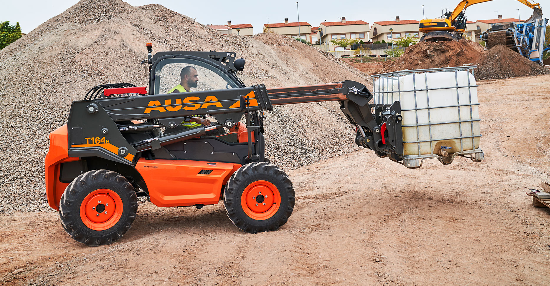 T164H는 최대 1,600kg(3,530lb)의 적재물을 들어 올릴 수 있으며, 최대 4m(13ft)의 인양력을 갖추고 있습니다. 컴팩트한 사이즈와 후륜 조향, 뛰어난 기동성 덕분에 동일모델에서 회전 반경이 가장 우수한 텔레핸들러입니다. 오프로드 기능이 뛰어나 최대 40º의 경사도에서도 작동이 가능합니다. 간단히 말해서, T164H는 시중에서 가장 성능이 뛰어난 텔레핸들러입니다.