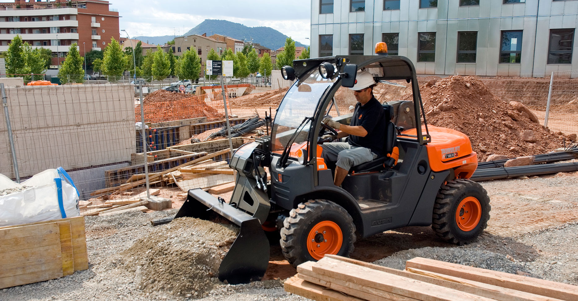 T144H 텔레핸들러의 뛰어난 조작성 덕분에 좁은 공간, 특히 가파르고 접근이 제한된 지형에서 화물을 취급하고 운반하는 데 가장 적합한 솔루션입니다. 다양한 어태치먼트를 퀵커플러를 통해 빠르게 교환 가능합니다.